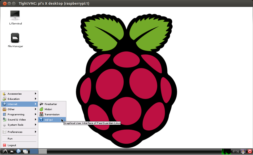 To start the GUI from the LXDE menu, select Internet -> pgl-gui